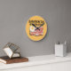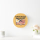 The clock did not take as long to arrive as I thought it might and was extremely well packaged. I didn't do the measurements so I didn't realize it is a little smaller than the average clock but that does not matter (just make sure you check if that's important to you).It is really nifty! It seems very solid and well made not flimsy at all. It has been going well and has kept good time in its few weeks on my wall. Nice product. Gets noticed too! Nicer in real life than the picture but true to the picture