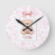 Mila | Custom Pink Teddy Bear Nursery Design Round Clock