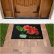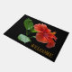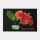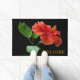 Milano Red Hibiscus Door Welcome Mat. Shown in the largest size. Matching welcome wooden box sign and pillows available.
