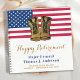 Add the finishing touch to your military retirement party with these USA American Flag design military guest book and party supplies. USA American flag in modern red white and blue, stars and stripes, with gold combat boots design. This American Flag party guestbook is perfect for a military retirement party, military deployments send off, military welcome home celebration, military graduation, and soldiers going away party. Perfect for all military, army, border protection, border patrol, conservation officer, park ranger, game warden, federal law enforcement. Personalise this american flag patriotic banner with your soldiers name and congratulations, welcome home, good luck or happy retirement. See our collection for matching military retirement invitations, military graduation gifts, party favours, and supplies. COPYRIGHT © 2021 Judy Burrows, Black Dog Art - All Rights Reserved. Military American Flag USA Boots Retirement Guest Notebook