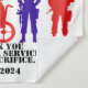 Military Appreciation Month May 2024 Tapestry. Show your support and appreciation for the military with our tapestry. In honour of Military Appreciation Month in May 2024, this tapestry features a powerful image of a waving American flag on the front, with a male soldier, a female soldier, a dog soldier, and a wounded soldier standing proudly underneath. The tapestry also includes the text, "Military Appreciation Month, May 2024, Thank You for your Service and Sacrifice." Proudly display this tapestry anywhere in your living space.