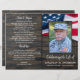 Honour the memory of your beloved veteran with our Military Celebration of Life Funeral Program. This thoughtfully designed keepsake provides a touching tribute to those who have dedicated their lives to serving our country. The front cover features a classic American flag motif set against a backdrop of rustic wood, symbolising strength, resilience, and patriotism.
