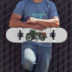 Military cruiser motorcycle cartoon illustration skateboard