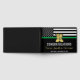 This graduation design features a military flag with black and white stripes, and a thin green line stripe as well. The gold army boots sits above the name of the graduating sergeant, captain, soldier, lieutenant or general.