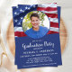 Patriotic American Flag Military Graduation Invitations. Invite friends and family to your patriotic graduation party with this USA flag patriotic graduation invitation. USA American flag design, red white and blue stars and stripes. This military graduation invitation is also perfect for military retirement invitations, military going away party, solider welcome home , change venue in personalisation. See our collection for matching military graduation gifts,party favours, and supplies. COPYRIGHT © 2021 Judy Burrows, Black Dog Art - All Rights Reserved. Military Graduation USA Flag Photo Patriotic Invitation
