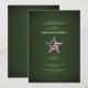 Celebrate a veteran’s honorable service with this bold and dignified military retirement party invitation. Featuring a green background and a prominent American flag star emblem, this design is ideal for honouring any branch of the U.S. Armed Forces. Personalise with the retiree’s rank, name, event date, and RSVP info for a memorable send-off.