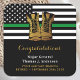 Thin Green Line Military Retirement Party Stickers. Celebrate years of dedicated service, your military retirement and host friends and family to your military party with this modern Thin Green Line Flag with Gold Army Boots Military Retirement favour stickers. USA American flag design in Police Flag colours, modern black green white and gold design. This military retirement party napkins is also perfect for military graduation, soldier going away part, deployments and homecoming, change venue in personalisation. See our collection for matching military retirement invitations, gifts, military retirement party favours, and supplies. COPYRIGHT © 2021 Judy Burrows, Black Dog Art - All Rights Reserved. Military Retirement Party Thin Green Line Boots Square Sticker