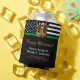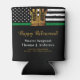 Thin Green Line Military Retirement Can Cooler. Celebrate years of dedicated service, your military retirement and host friends and family to your military party with this rustic Thin Green Line Flag with Gold Army Boots Military Retirement party favours can coolers. USA American flag design in Military Flag colours, worn black green white and gold design. This military retirement napkins is also perfect for military graduation, soldier going away part, deployments and homecoming, change venue in personalisation. See our collection for matching military retirement invitations, gifts, military retirement party favours, and supplies. COPYRIGHT © 2021 Judy Burrows, Black Dog Art - All Rights Reserved. Military Retirement Thin Green Line Flag Army Can Cooler