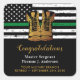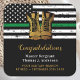 Thin Green Line Military Retirement stickers. Celebrate years of dedicated service, your military retirement and host friends and family to your military party with this rustic Thin Green Line Flag with Gold Army Boots Military Retirement party favour stickers. USA American flag design in Military Flag colours, worn black green white and gold design. This military retirement napkins is also perfect for military graduation, soldier going away part, deployments and homecoming, change venue in personalisation. See our collection for matching military retirement invitations, gifts, military retirement party favours, and supplies. COPYRIGHT © 2021 Judy Burrows, Black Dog Art - All Rights Reserved. Military Thin Green Line Flag Soldier Retirement Square Sticker
