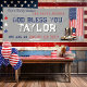 Personalise this patriotic US Military combat boots & American flag going away / farewell party banner, 2.5x6 ft in size, with "When Duty Calls, The Brave Answer - Good Luck [Recruit's Name] - We are SO PROUD (underlined) of you!" wording in rustic distressed typography, drip USA flag, watercolor US flag combat boots, and red, white, and blue stars over a neutral grey background. Such a great way to send off your brave Airman (Air Force), Guardian (Space Force), Soldier (Army), Marine (Marines), Sailor (Navy), or Coast Guardsman (Coast Guard) who is heading to basic training, boot camp, or even deployment! ♥ Lovingly designed by an Air Force Mum ♥ Banner template can be easily personalised for any branch of military service! Need to adjust placement or make fonts bigger/smaller to fit the space provided? No problem! Simply click the blue "Edit using design tool" button at the bottom of the "Personalise" window, click on the element that needs adjusting, and click the "done" button at the top right corner to complete. **Our son recently completed his service as a USAF F-16 Crew Chief, so I too, had a hard time finding appropriate invitations, party decorations, encouragement cards during basic / personalised graduation gear and more! All my designs, from the farewell party to the training process (and incredible graduation week!!), through active duty and coming home here in my Zazzle storefront, were created in honour of my son and all our brave military service personnel and families. See the full collection by clicking the blue “by FigLilyCo--military” link in the upper right hand corner of this screen, click my store name under my photo to find what you're looking for! **Custom design requests and template questions are ways welcome - click the "message" button, or email direct (with a quick response): contact@figandlilyco.com. ♥ From this proud military family to you and yours - we send our love, sincere blessings, and HUGE thanks for the service, courage, and sacrifice of your US Service Member ♥