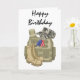 Birthday card featuring an illustration of a military hat, vest, boots, and USA dog tag. Customise it with your own birthday wishes to make it extra special.