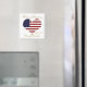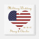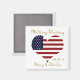 A beautiful personalised patriotic or military wedding themed save the date, or wedding favour magnet. This square shaped, American flag heart is a wonderful reminder for your patriotic themed wedding! In patriotic colours of red, white and blue on a white background with an elegant golden script font! The text is in template form and ready for you to add the names of the bride and groom and wedding date! Note: If you would like to change the font size, style or the colours, simply click on 'customise' and these options will be available to you! This magnet is wonderful as either a 'save the date' or wedding favour. Please visit our store for matching or other styles of patriotic items such as reception placement cards, table number cards, response cards, postage stamps, military ornaments and wedding favours, and much more.