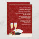 Customisable wedding invitation featuring two champagne glasses, a bridal bouquet and a dress blues cover.