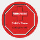 A graphic medical alert milk allergy sticker with templates for your child's name and text.