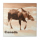 A monochrome (brown) image of a cow moose walking in snow. Text reading "Canada" also appears. Moose are year-round residents in many northern communities. Here in Anchorage there are about 1500 animals, along with wolves, brown bears and other wildlife.They are usually well-behaved. They often cross streets at the crosswalks after waiting for a walk signal. From a photo of a moose which wandered through my yard.