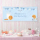 For the chocolate chip cookie lover in the family. Celebrate your little one’s birthday with our fun and festive cookies and milk theme. Featuring a tall glass of milk with a sipping straw and chocolate chip cookies. The background is in a light blue with festive bunting flags. Completely customisable. Check out the coordinating stationery and gifts.