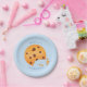 For the chocolate chip cookie lover in the family. Celebrate your little one’s birthday with our fun and festive cookies and milk theme. Featuring a tall glass of milk with a sipping straw and chocolate chip cookies. The background is in a light blue with festive bunting flags. Completely customisable. Check out the coordinating stationery and gifts.