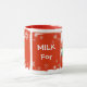 Here's a mug to go along with the plate of cookies for Santa. On this mug, we also included Santa's moustache smoosh area so he doesn't have to feel bad about dribbling with his moustache and beard when he drinks. :D This is customizeable in several ways. First, you can change it from "Milk" to say "Eggnog" or "Tea" or whatever you'd like it to say. Second....we have an area where you can list the name or names of the children who are leaving this for Santa. (Type each name on a separate line. Delete "Name" if you want a line blank.) Or....Just delete all the "name" area and type in "The Smith Family" if you wish. NOTE: We are showing this on a red ringer mug. But, it also looks good with a green trim or even a black trim.