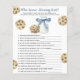 A Little Cookie Is On The Way! Watercolor baby shower party. Watercolor cookies with chocolate and bottle milk with blue bow.