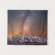 This photo features the Milky Way over Grand Teton. The city light behind Teton mountains cast an orange glow.