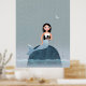 Milla Mermaid sitting in rain kid's illustration Poster