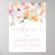 This bridal shower welcome sign features a soft watercolor spring floral design. The script heading is an image that cannot be edited. All of the other text is fully editable. For more advanced customisation of this design, simply select the "Customise It" button above.