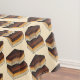 Tablecloth features an original marker illustration of a classic British bake: millionaire's shortbread, featuring a shortbread biscuit base, caramel layer, and chocolate layer on top.