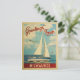 This Greetings From Milwaukee Wisconsin vintage travel nautical design features a boat sailing on the water with seagulls and a blue sky filled with gorgeous puffy white clouds.