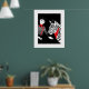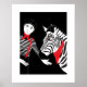 A mime in a black and white striped shirt wearing a red bandanna introduces his Zebra who is also wearing his Zebra stripes and sporting a red bandanna. It's graphic styling of this art makes it a fun piece to hang in an office, kids room or den. Mime Zebra goes with companion piece Mime Penguin.