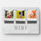 Create an elegant unique gift for grandma with this three instagram style photo collage plaque. A rustic wood effect print with "MIMI" or your grandma's preferred nickname in sophisticated gray lettering and the grandchildren's names overlaid on the photo's.