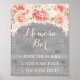 Mimosa bar sign poster for baby shower, bridal shower, or wedding in rustic grey country wood pattern with light blush pink watercolor vintage flowers. Perfect for a baby shower, wedding, or bridal shower.