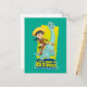 This cheerful design from Dino Ranch features the adventurous young cowgirl Min riding her friendly brontosaurus, Clover. Min is wearing her signature yellow cowboy hat, a brown and yellow plaid shirt, brown pants, and brown boots. She is smiling broadly, holding onto Clover's yellow saddle with a star emblem. Clover, the light blue brontosaurus, also appears happy and ready for action. The text "LET'S MAKE A DINO DIFFERENCE!" is prominently displayed at the bottom in bold, colourful lettering, conveying a positive and impactful message. The background is a light yellow with abstract green and blue shapes, adding to the playful and energetic feel of this Dino Ranch scene. This artwork captures the spirit of teamwork and making a positive impact, perfect for fans of Min, Clover, and the Dino Ranch series seen on platforms like CBC Radio Canada.