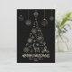 This design features a minamalist Black and gold christmas tree silhoutte made up of christmas illustrations such as snowflakes, holly and berries, reindeer, bells, candy cane and more. You can customise all the text. On the back is a 3 photo collage layout where you can upload your own family photos. You can remove the creator credit to ensure that your photos are not covered by the zazzle qr code. See the whole matching collection.