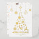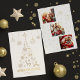 This design features a minamalist white and gold christmas tree silhoutte made up of christmas illustrations such as snowflakes, holly and berries, reindeer, bells, candy cane and more. You can customise all the text. On the back is a 3 photo collage layout where you can upload your own family photos. You can remove the creator credit to ensure that your photos are not covered by the zazzle qr code. See the whole matching collection.