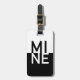MINE black and white luggage tag in a modern, contemporary clean lines.