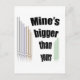 Mine's bigger than yours is never more appropriate than when used by organists, whose instruments vary hugely in size. Now, when attending a conference or congress, this is the best way to establish once and for all that yours really IS bigger than theirs! The graphic shows two sets of organ pipes, one much larger than the other, and the words "Mine's bigger than yours".
