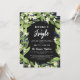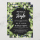 Beautiful floral Christmas party invitation with sage green greenery, white flowers, and blue berries framing Mingle & Jingle and your invitation wording.