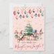These adorable Christmas party invitations feature multicolored Victorian Christmas ornaments hanging down from the top. A beautiful Christmas tree with presents is in the centre and Santa and all his friends are gathered around for the celebration. Gold stars are twinkling all around. The reverse side has templates for you to enter all your party information. There are more Victorian Christmas ball ornaments, a yummy looking cake and two champagne glasses with bubbles coming out. This pretty pink invitation would be a fun alternative to the more traditional red and green holiday ones and there's an entire selection of coordinating party items in the shop, so be sure to take a look at the whole collection.