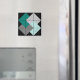 Not just for barns anymore. Decorate with this mini barn quilt block "Card Trick" quilt block magnet right on your fridge. Traditional single quilt block in teal blues and greys. Many more magnets with quilt block patterns available to collect at the Patchpourri shop at Zazzle.