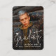 Black and white modern script mini size Graduation announcement and invitation with photo, simple and fun. Custom it with your own photo and grad party information.