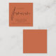 Mini size 2,5 x 2.5” charm. PLEASE NOTE if you are in the US, the 2.5” square is smaller than the minimum US postage requirement so please choose size 5.25” x 5.25” square if you are intending to mail them (Note too that square cards may cost more to mail than rectangular ones). We Decided on Forever Terracotta Save The Date. Forever is in a stylish set handwritten style script in the centre.The rest of the text you can easily personalise. Text and background colours can be changed if you wish to better suit your wedding theme via the customise further option.