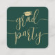 These graduation invitations are small in size but big on stylish simplicity. Announce the graduate's achievement and invite family and friends to celebrate with elegant mini graduation party enclosure cards. The small square business card size makes them easy to insert with graduation announcements or to hand out to family and friends (they do not come with envelopes.) Sold in packages at an affordable price, these inserts offer a chic option to stay within a budget. The wording on this template is simple to personalise, and the colours can be customised using the the Zazzle design tool. The modern green and gold design features handwritten style script calligraphy with a mortar board cap and elegant classic typography. Please note that gold is printed colour, not metallic foil. This graduation invitation card is a unique way to announce a special day celebration. Congratulations to the graduate!