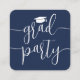 These graduation invitations are small in size but big on stylish simplicity. Announce the graduate's achievement and invite family and friends to celebrate with elegant mini graduation party enclosure cards. The small square business card size makes them easy to insert with graduation announcements or to hand out to family and friends (they do not come with envelopes.) Sold in packages at an affordable price, these inserts offer a chic option to stay within a budget. The wording on this template is simple to personalise, and the colours can be customised using the the Zazzle design tool. The modern navy blue and white design features handwritten style script calligraphy with a mortar board cap and elegant classic typography. This graduation invitation card is a unique way to announce a special day celebration. Congratulations to the graduate!