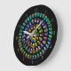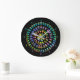 A flat acrylic clock decorated with a colourful mandala made of Mini Bean Poads™. This is a photo of a batch of limited edition Poad™ sculptures individually hand painted by Melody Pena and produced by Windstone Editions.