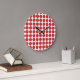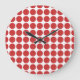 Cute and trendy Mini Polka Dots Wall Clock. This design features small circle polka dots in red and white. Text can be added to this design to give it a personal touch.