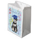 Congratulate your favourite graduate with a gift in a bag featuring a cute little Miniature Schnauzer graduate wearing a mortarboard amid a flurry of confetti.
