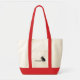 Love the durable cream colored canvas and navy blue contrasted handles. Perfect for carrying my laptop and papers.