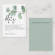 MINI sized 3.5 x 2.5” with this informal Script Green Eucalyptus Wedding Details Enclosure. The header is in an elegant set handwriting style with the details beneath and watercolor green eucalyptus leaves flowing across the top. Easily personalise with your own details.