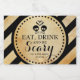 Make your own goth wedding reception sparkling wine favours with this personalised label. These spooky DIY sparkling wine labels are unique and add a touch of scary to your Halloween party or wedding reception. They feature skull and crossbones design with the words Eat Drink and be Scary. Customise them to read, Pop The Bubbly, Thank You, Miss to Mrs, Bride to Be, or whatever you like. The labels are slightly larger to cover most mini wine labels and fits perfectly on standard sized mini sparkling wine bottles.