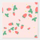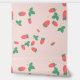A sweet cute wallpaper that features a delightful and playful pattern of scattered mini strawberries on a sweet, light pink background. The strawberries are rendered in a vibrant red with green leaves, and they are interspersed with small, delicate white or light yellow strawberry flowers, adding to the charm. The overall impression is cheerful, fresh, and sweet, making it ideal for nursery’s decor and baby, toddler, child rooms.